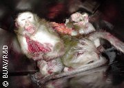 Pour les vivisecteurs, les animaux ne sont ni plus, ni moins, que du « matériel de laboratoire » mis à leur disposition. Les animaux sont exploités et maltraités et finalement jetés quand ils ne servent plus à rien. Leurs besoins et leurs souffrances n’entrent jamais en ligne de compte, sauf sur papier, quand les vivisecteurs veulent se déresponsabiliser et donner bonne impression, face à un public de plus en plus opposé à la vivisection.